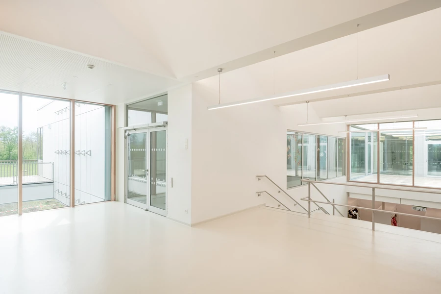 In addition to openable windows for shock ventilation, the concept incorporates the necessary air exchange and includes energy-efficient basic ventilation: In this continuous ventilation based on the cascade principle, the supply air is introduced into the group rooms and then flows into the recreation room and then into the bedroom. There, the air is extracted and discharged via heat recovery.