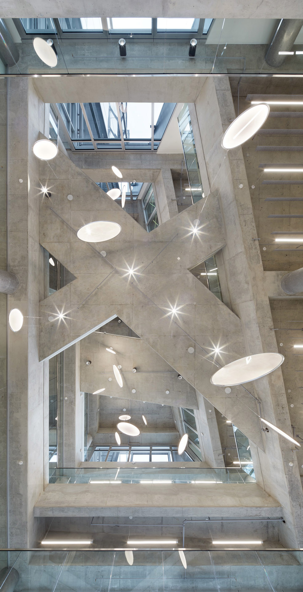 L'activation des équipements du bâtiment en combinaison avec des convecteurs en pied de façade conditionne les espaces. La masse thermique du bâtiment, délibérément exposée, assure son inertie thermique et ainsi des changements de température lents.