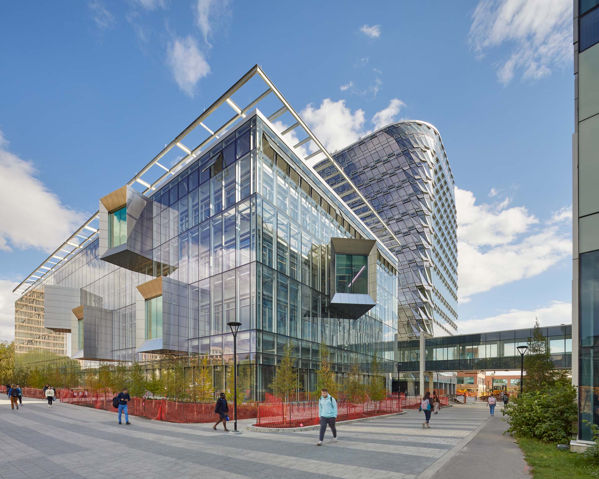 Afin de sensibiliser au changement climatique et à la transformation énergétique nécessaire dans le secteur du bâtiment, le parti architectural rend les différents éléments des concepts climatique et énergétique visibles depuis l’extérieur, faisant figure d’exemple sur le campus. La tour rénovée, bâtiment de 12 étages comprenant auparavant la bibliothèque, a été intégralement refaite et transformée pour accueillir des bureaux. Le nouveau bâtiment "Block" (bloc) est achevé dans un deuxième temps. Enfin, un atrium, appelé "Link" (lien), relie les deux bâtiments.