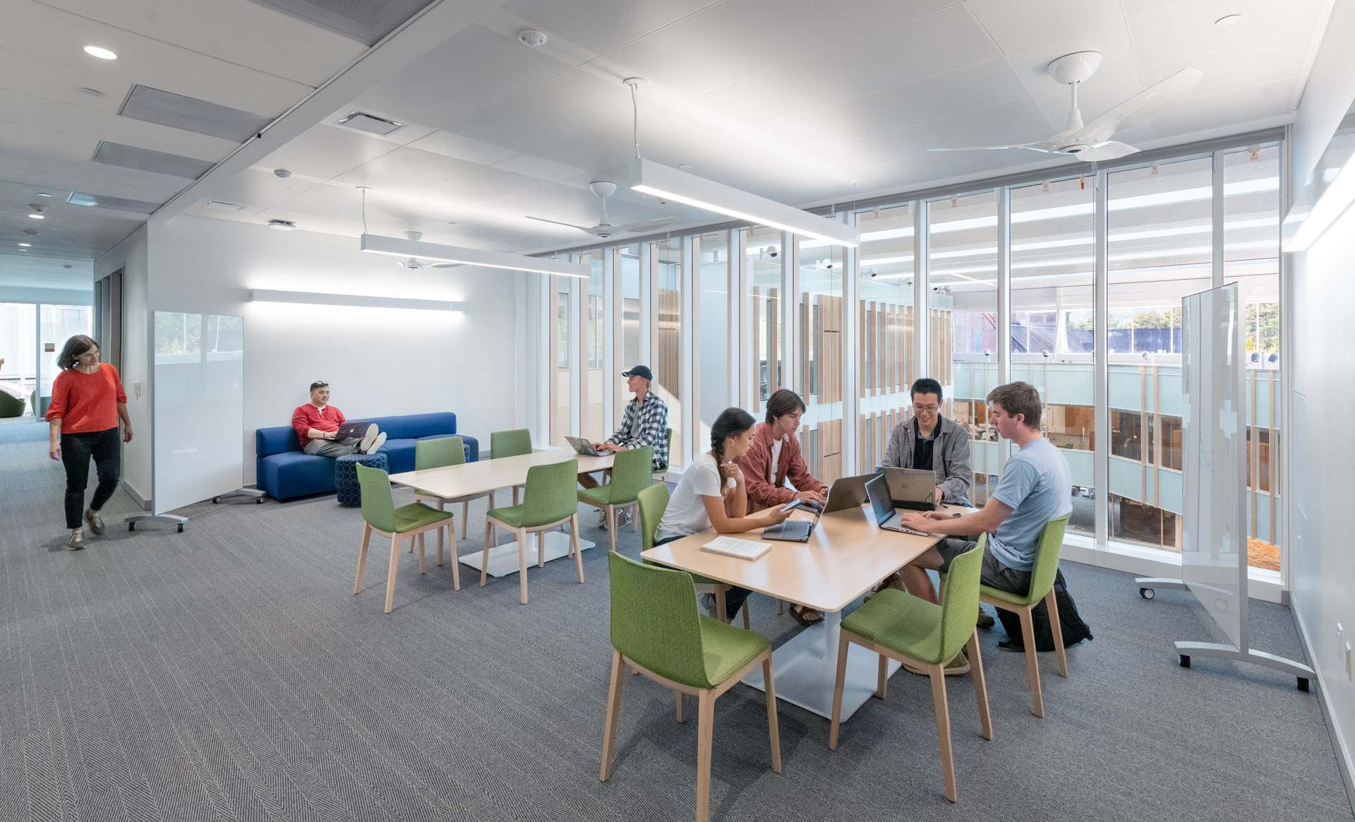 The building is to be closely monitored and its performance constantly communicated to occupants. The predicted site EUI is as low as 18 kBtu/sf if the campus transitions to heat-pump based heating. 9 kBtu/sf will be supplied from on-site photovoltaics.