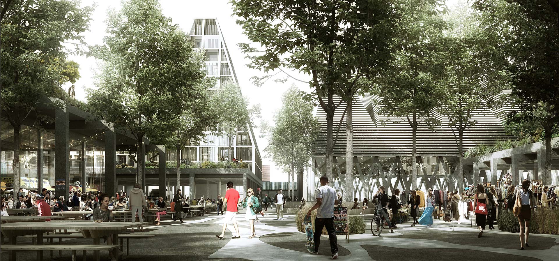 Christiansholm - also known as Paper Island - in the heart of Copenhagen's harbor is one of Copenhagen’s most attractive locations. The vision of the competition won by the team led by COBE is to create a unique area, where manageable and intimate street spaces provide a space of high environmental quality. The 45,000-square-metre development contains a re-interpretation of the successful former industrial halls by creating a plinth with pitched-roof halls containing event spaces, galleries and a swimming pool. Housing is placed on top of the ground-level uses that surround a green public courtyard.