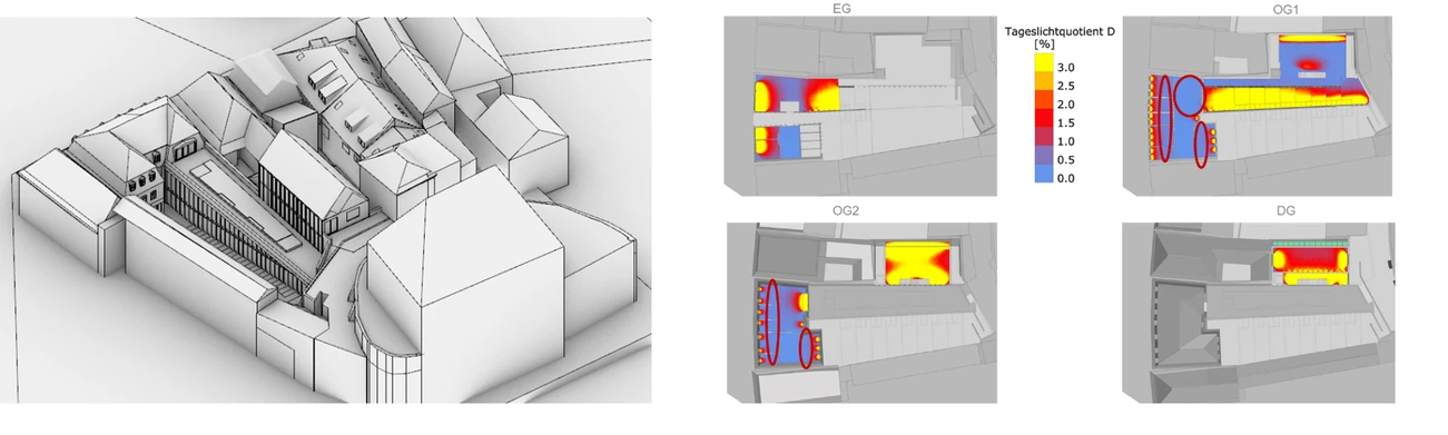 Comfort conceptual goals are implemented in the form of optimized natural lighting in the old and new buildings - despite very dense development.
