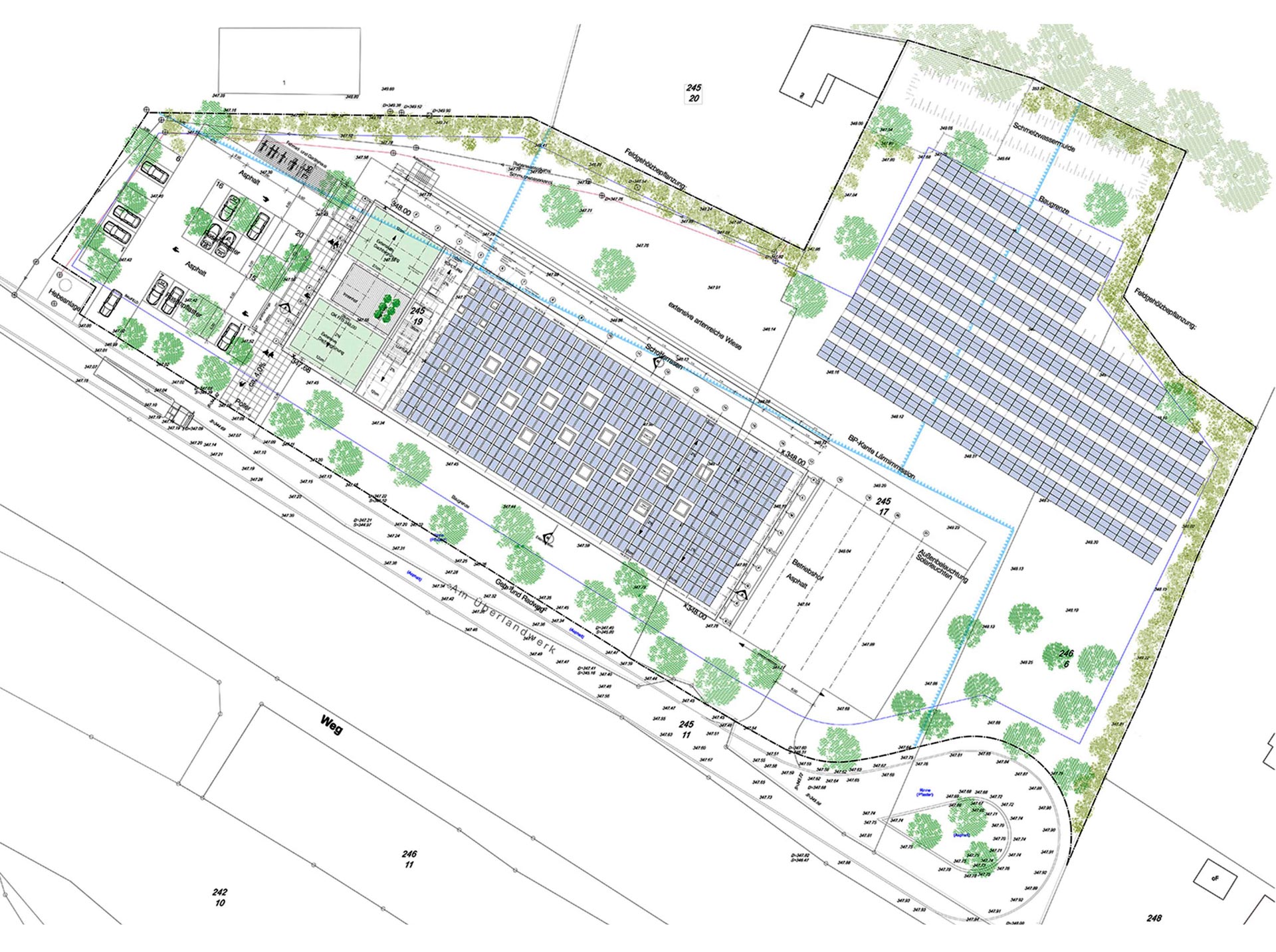 Dans le cadre d‘une étude réalisée par Transsolar pour la construction d'un nouveau bâtiment de production de 2140 m2, la vision énergétique du projet Elobau était d’être entièrement approvisionné en énergies renouvelables. Le défi était de concevoir un bâtiment autonome en chauffage, refroidissement et électricité, en plus d'un bilan énergétique primaire positif. Concernant l’électricité, l’objectif était d’assurer un équilibre entre l'offre et la demande.