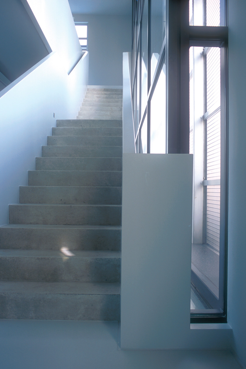 Cooling is achieved by active slabs integrated in the ceiling of each floor. In the training and conference areas additional wall embedded fluid systems behind facing frameworks have been installed that act as a gravity driven cooling system.