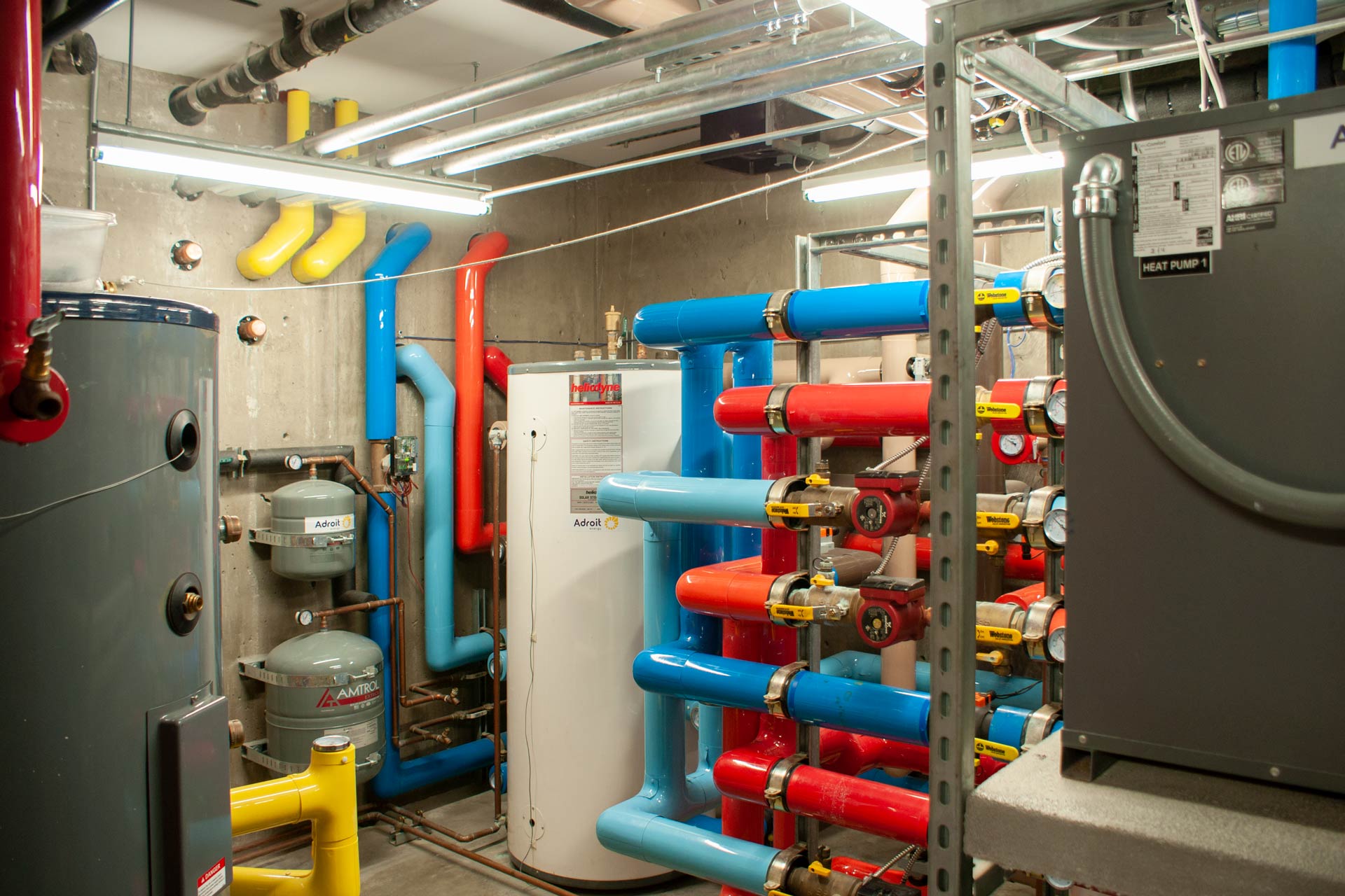 The house is equipped with a complex building control system with data acquisition. This enables the building behavior to be documented and evaluated online as well as remotely. After the first year of operation, the evaluations show several optimization potentials. For example, the effectiveness of the thermal buffer storage could be increased by adapting the control system, and a change in the piping system, which makes direct free cooling from the geothermal system possible.
