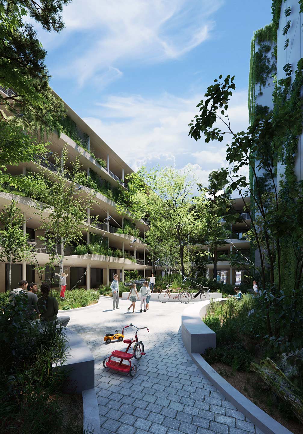 1925 Victoria Park represents a new development model, integrating holistic sustainability strategies with long-term affordable rental housing and prefab hybrid heavy timber construction. It emphasizes larger family-style units, future adaptability, and community-mindedness, and will be the first Toronto Green Standard Tier 4 (TGS4), near-net-zero hybrid mass timber development in Toronto.