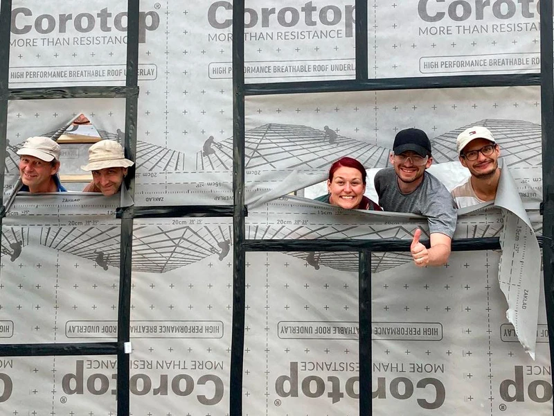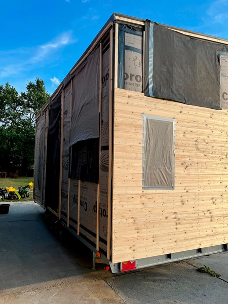 The way in which the construction was devised from the beginning was to build the frames and supporting structure of the individual walls on the ground and then lift and fix them in place on the base. This modular construction method facilitated that several teams of people could work on different parts of the Tiny House simultaneously.