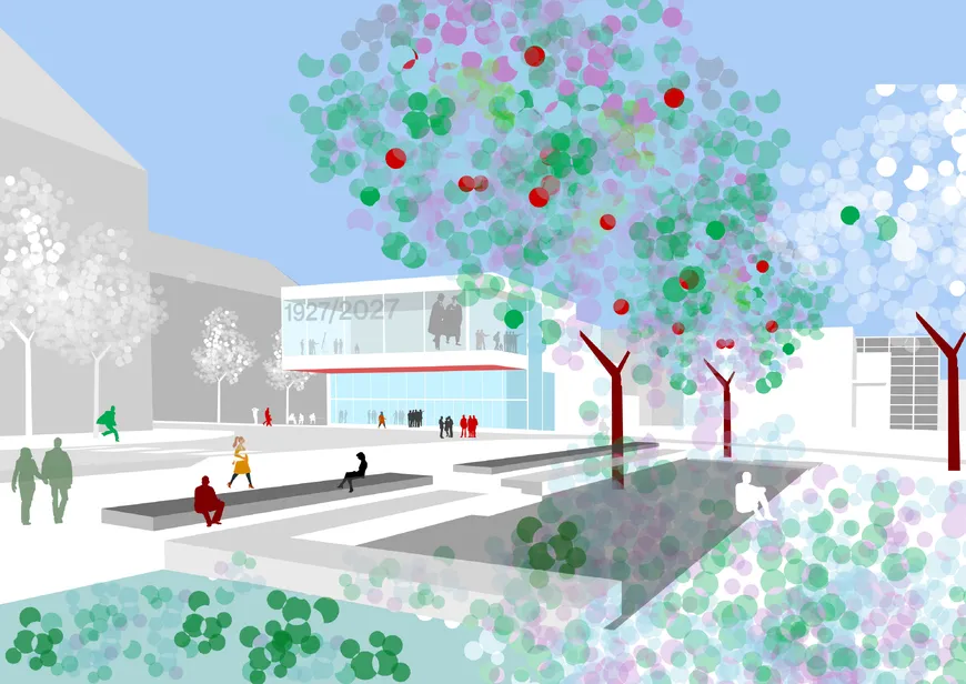 Organized by the state of Baden-Württemberg and its capital Stuttgart in cooperation with the International Building Exhibition 2027 StadtRegion Stuttgart (IBA'27), the competition examined the urban planning framework for an extension of the Academy of Fine Arts as well as the conversion and renovation of the church Brenzkirche and a new reception and visitor center to be built at the entrance to the listed ensemble. This is to be completed by 2027 and will serve as a central contact point for the IBA'27.