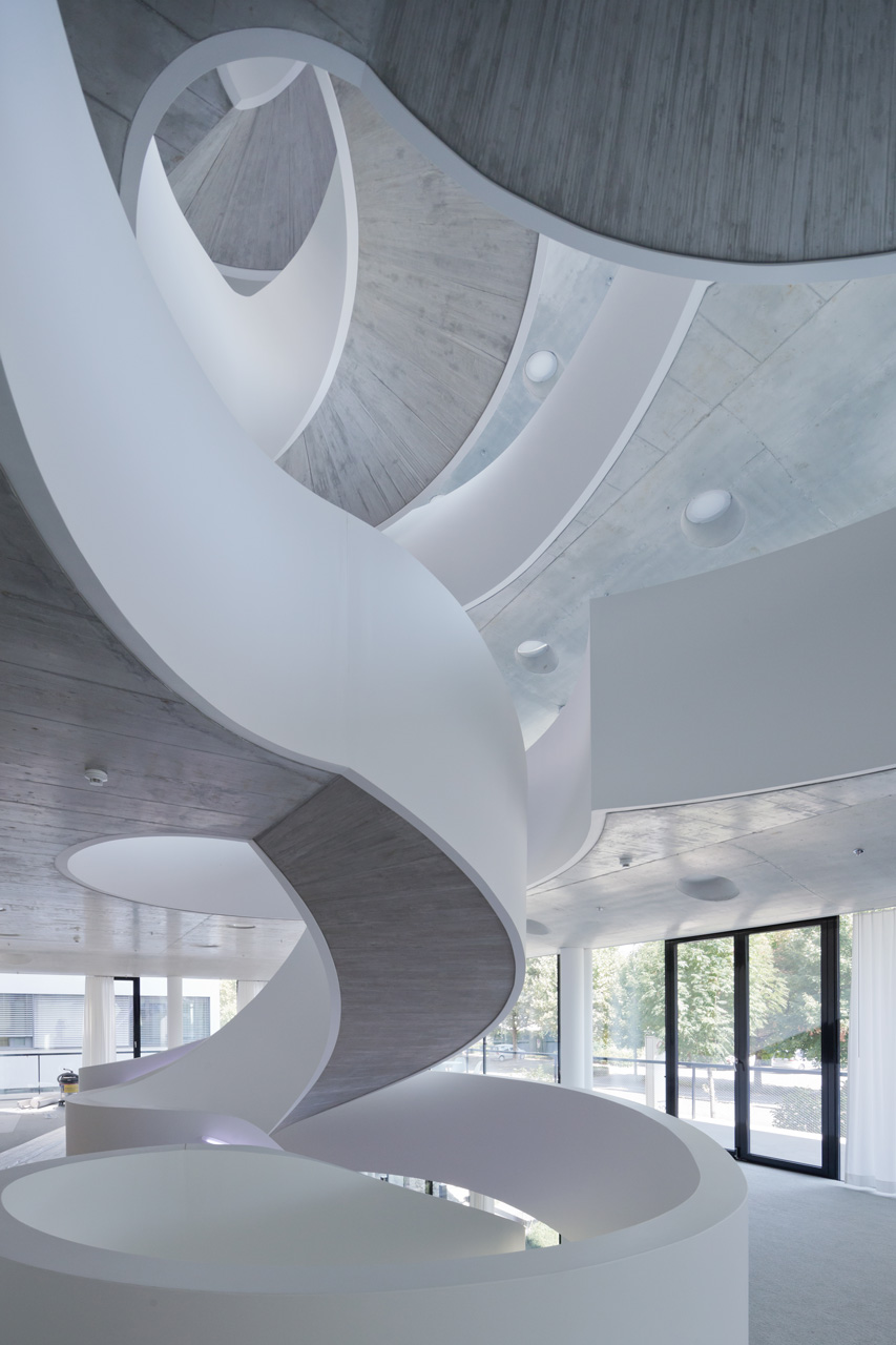 Thermally activated components, which can be heated or cooled as required, provide the basic conditioning. Unfortunately it was not possible to realize a cohesive energy system between the individual campus buildings. However, the Clinical Research building has a wood chip boiler for heating.