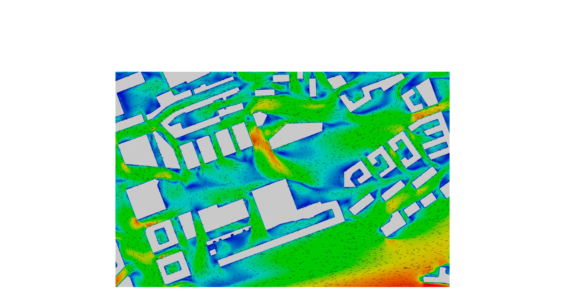 Transsolar accompanies the urban planners team in designing a neighborhood highly comfortable for pedestrians and develops strategies for renewable energy supply for the site. Studies on solar radiation and aerodynamic simulations have informed the layout of the buildings volumetrics: Adjusting the surfaces and optimizing the overall density makes it possible to defuse areas where critical air movements could occur.