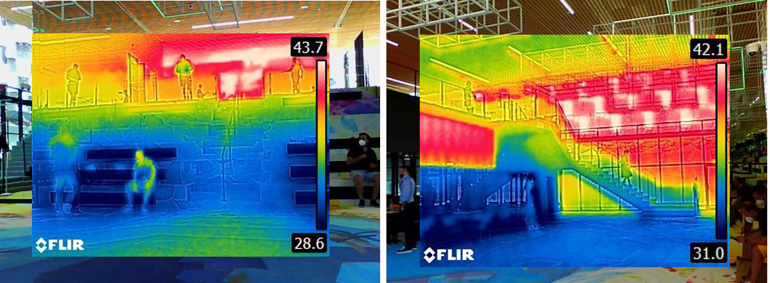 Our system implementation and evaluation on site show that the "CoolPool" does its job: The surface temperatures were measured by using an infrared camera and the function confirmed; "Feel the Spirit of Innovation", the slogan of the Baden-Württemberg House, is literally possible.