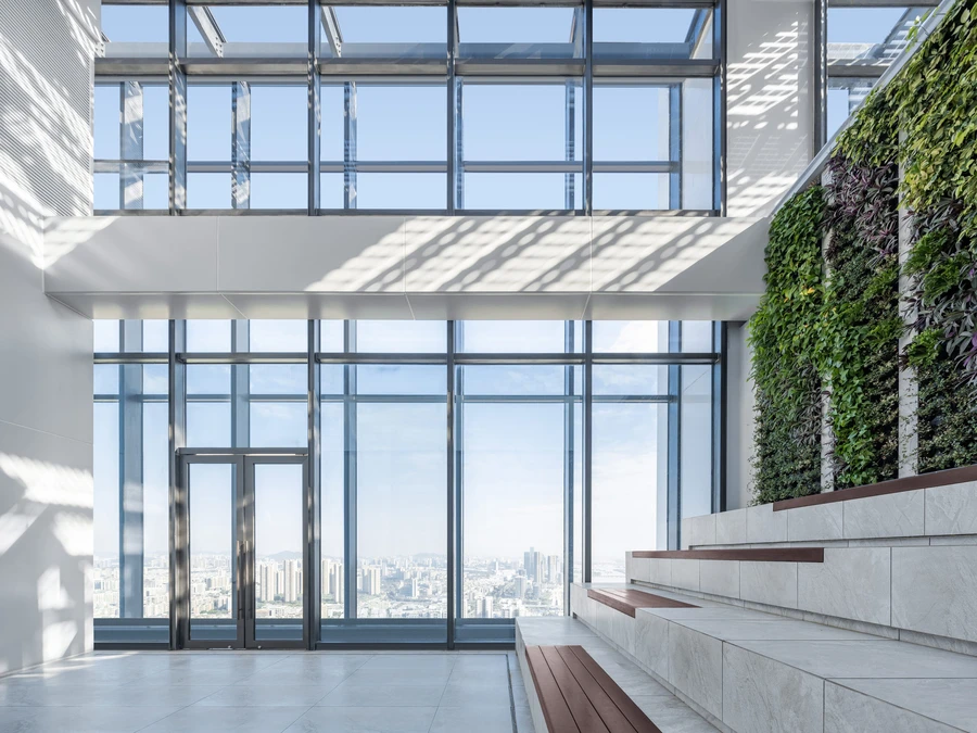 The building has been awarded the Chinese certifications “Technical Standard for Nearly Zero Energy Buildings” and “Gold Carbon Neutral Building,” and meets the highest standards for energy efficiency and sustainability. It holds the LEED Gold certification and the “3-Star Green Building Label.” Certification for WELL Platinum is pursued.