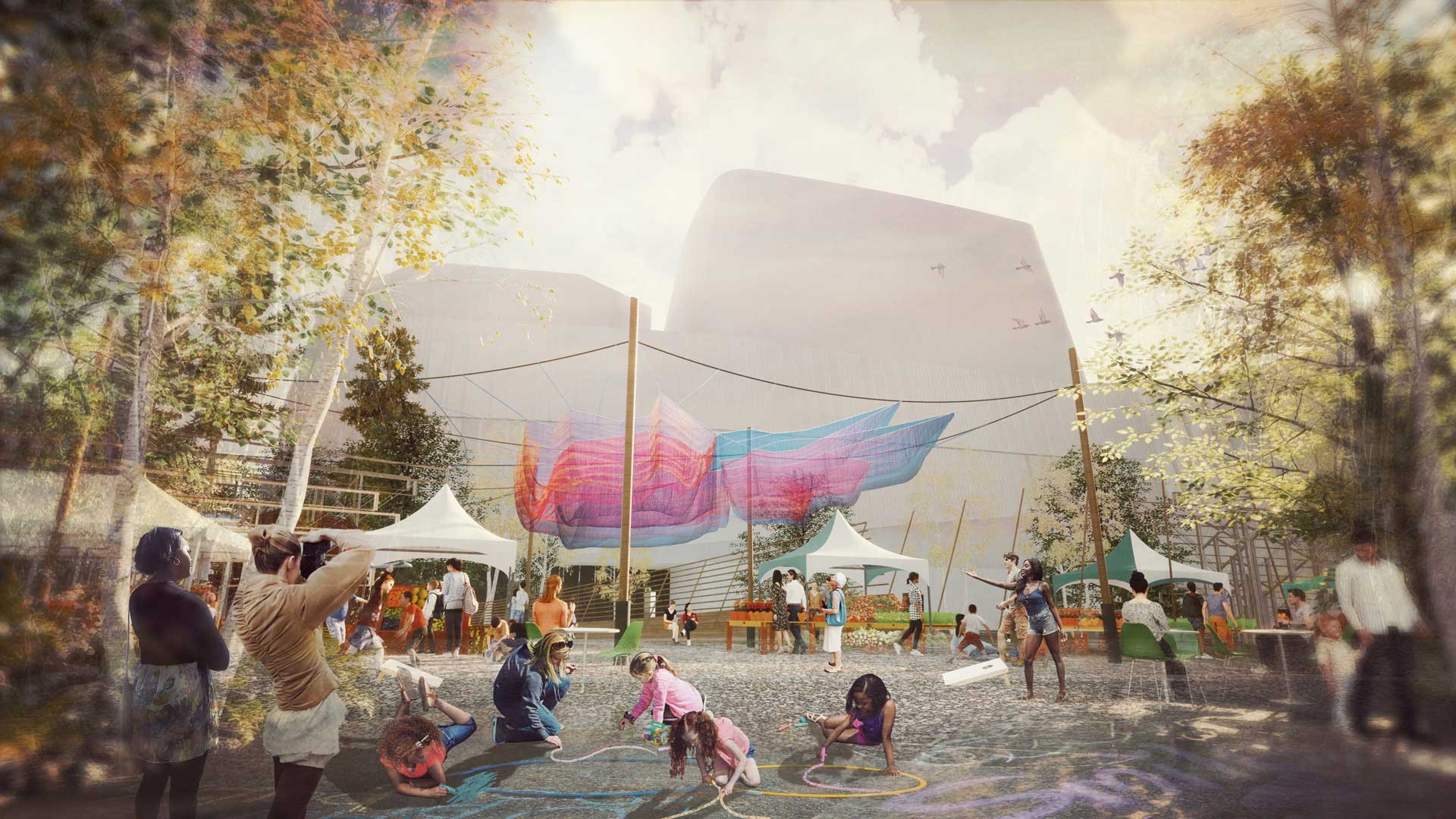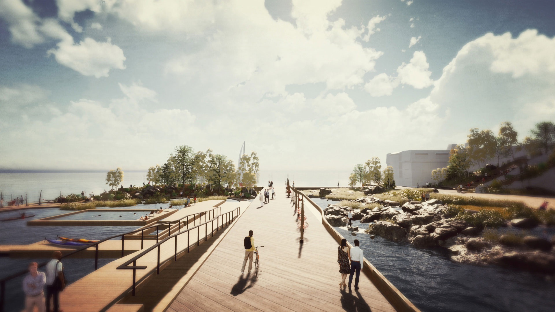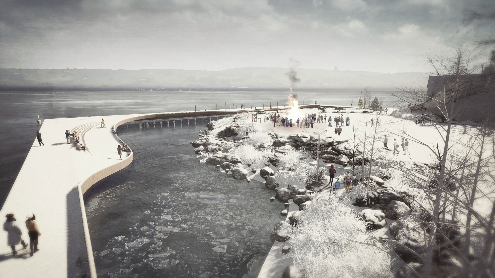 The work completed by the winning team embodies a vision of a place for all seasons, rooted in sustainability, connecting the city at the water. It’s a gathering space where art, learning and community unite.