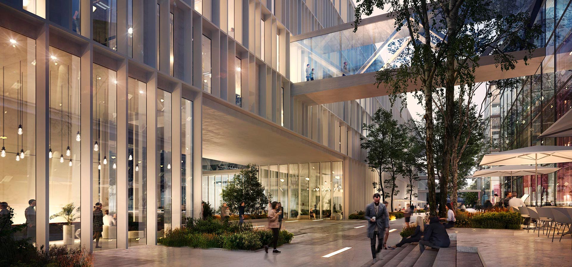 Another defining element of the concept is the so-called "Green Core" - a 7-story atrium with partly open work and communication levels.