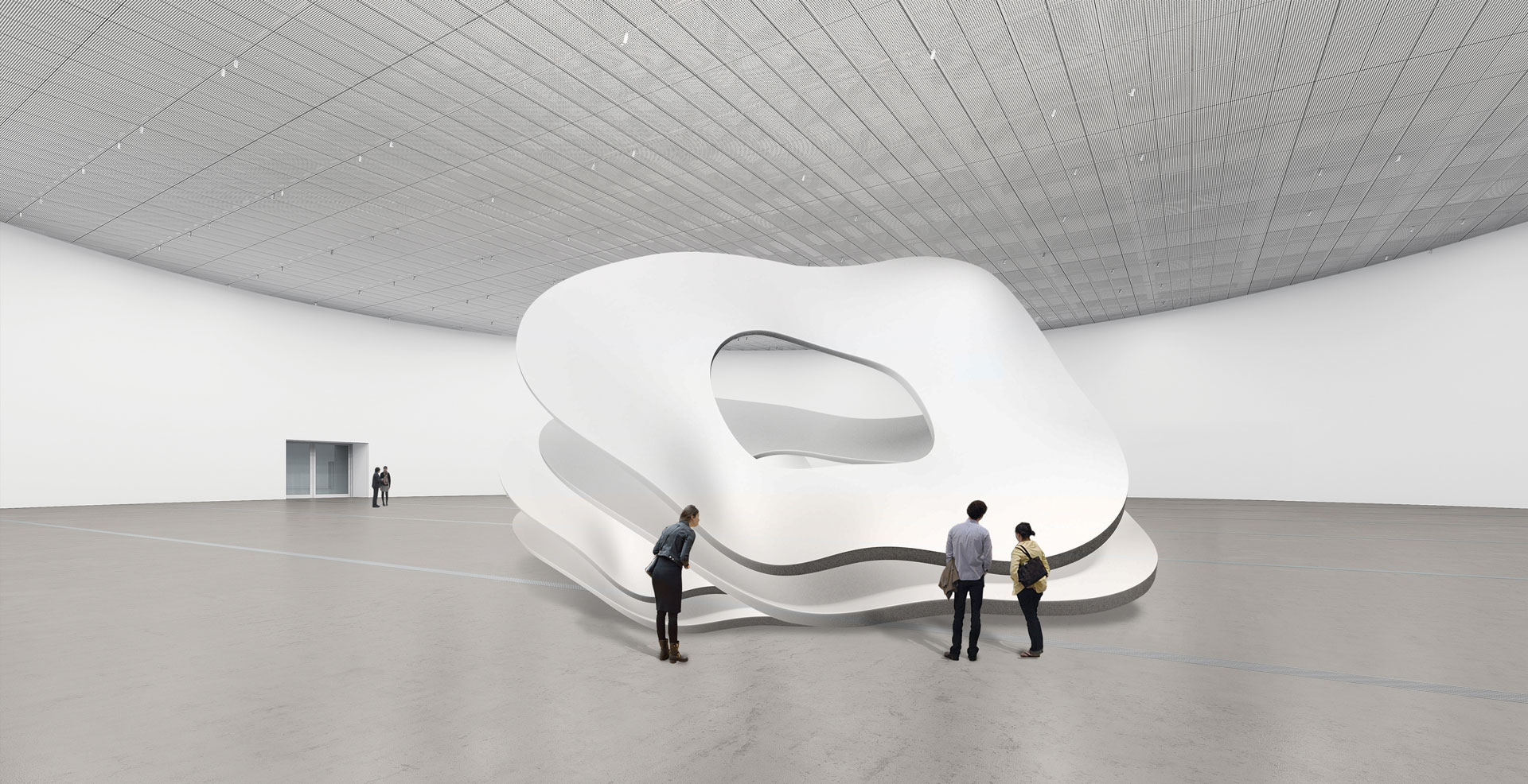 In the initial planning stages leading up to the building application, Transsolar sized and fitted heating, cooling and ventilation components in consultation with SANAA Architects. The main challenges were the consequences of the radical change of use from an air-open unheated hall without walls to an enclosed, fully air-conditioned art museum, without changing the original dimensions. Thus, the technical systems had to respect the existing building structure and monument protection regulations, but heating, cooling and ventilation has to be state of the art.