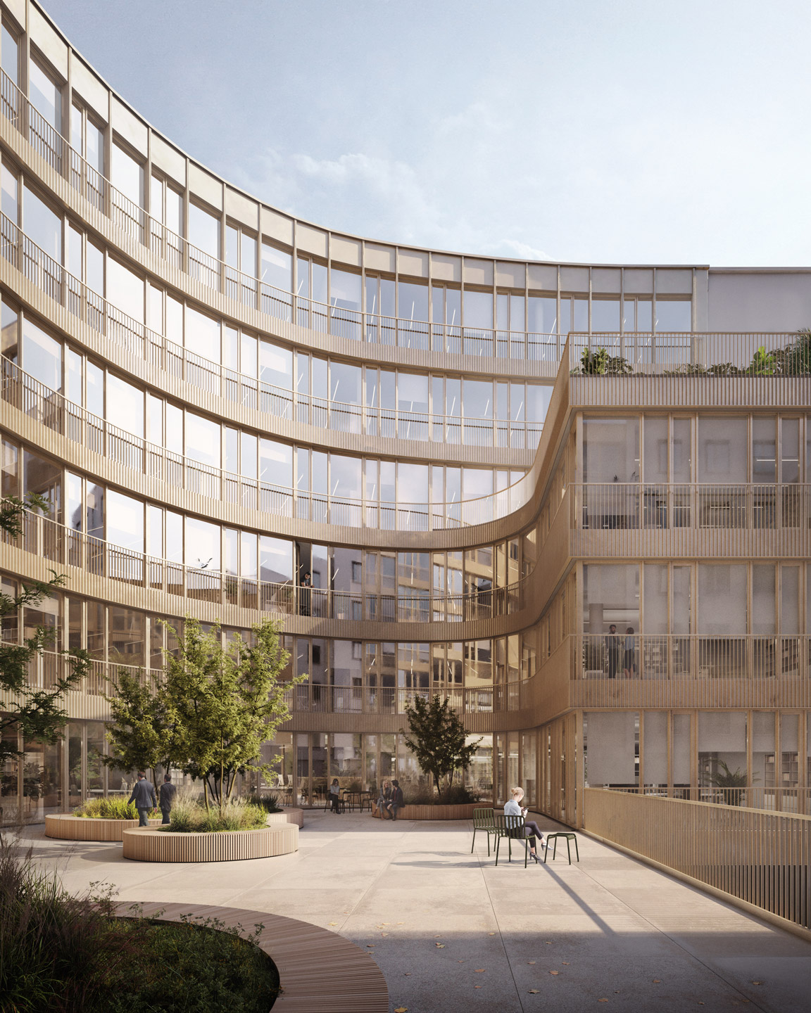 The main façade features a double-skin envelope that effectively mitigates noise pollution while promoting natural ventilation. Strategically placed openings along the façade allow for a continuous flow of fresh air, providing a comfortable and healthy working environment for occupants.