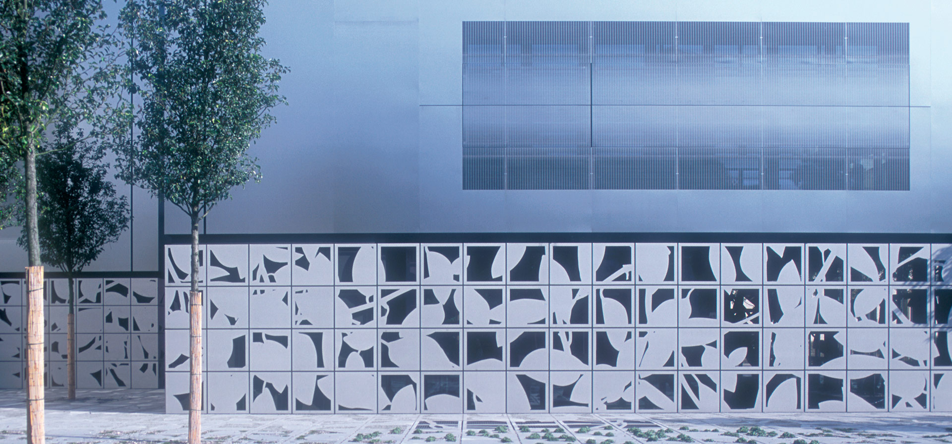 Shading is provided by external sun protection in the form of perforated stainless steel shutters. Activation of the concrete core cooling is achieved using free evaporative cooling in an open cooling tower and the geothermal borehole system in the ground.
