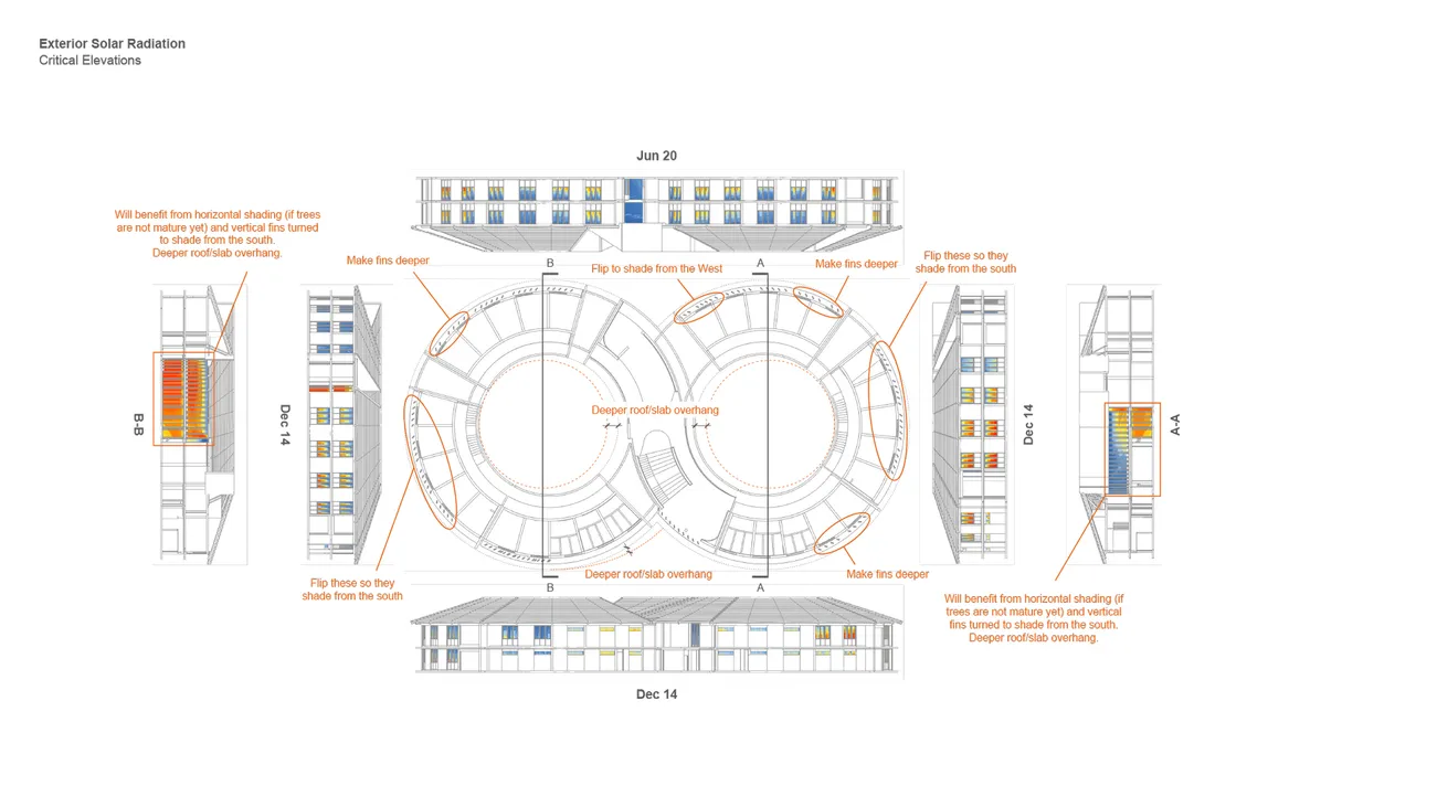 Transsolar’s role in the project was to make the entire campus as low energy and resilient as possible since the school relies on its own photovoltaic array (1.5MW peak power output) for electricity. All the buildings on campus (classrooms, laboratories, residences and animal barns) have been designed to be fully daylit so that no electric lighting is needed during the day. Additionally, the form, orientation and materials of each building have been specifically optimized through simulation so that the spaces will be comfortable with good air quality year-round using only natural ventilation.