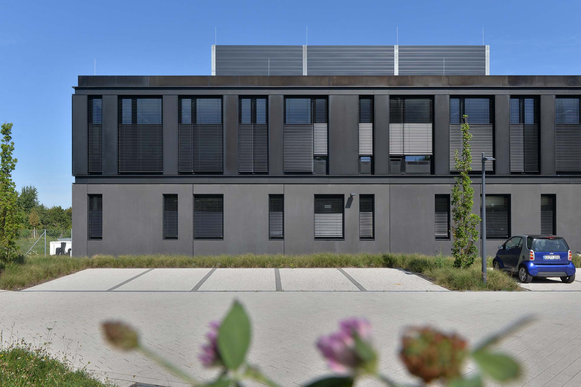 ZSW's new institute in Stuttgart's Engineering Park (STEP) is showing what is being researched here with its shell, as it is largely equipped with specially developed thin-film modules: The façade and its integrated PV elements with an area of around 170 m² / 1,800 sf² and a peak output of around 27 kW are black and form a homogeneous glass surface. The 230 modules integrated horizontally on the partially greened roof have an output of approx. 20 kW. A building equipped with vertically mounted modules on the façade can benefit from a low sun during the morning and evening hours as well as during winter. The façade is also designed so that modules can be easily replaced individually for test purposes.
