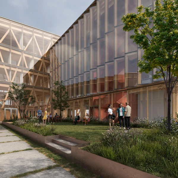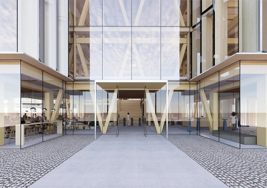 The project is seen as an expression of Nordic design tradition combined with technical innovation, aiming to blend aesthetics and functionality with a strong sustainability profile. The structure features four wings containing offices and testing facilities, as well as a central atrium with exhibition areas, meeting rooms and community spaces. Four different outdoor areas provide space for relaxation, meetings, and research.